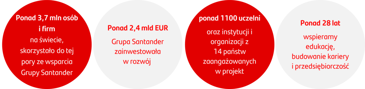 Od 1996 roku Grupa Santander koncentruje się na budowaniu lepszej przyszłości poprzez wspieranie społeczeństwa w rozwoju. To wsparcie realizuje w trzech kluczowych filarach: edukacji, budowaniu kariery i przedsiębiorczości. Działa na rzecz łączenia ludzi, firm i uczelni, pomagając im się rozwijać i sięgać po więcej. Tą misję realizuje przede wszystkim poprzez Santander Open Academy.
